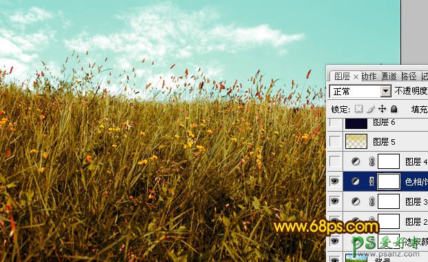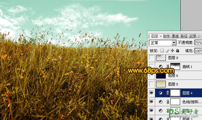 4、按Ctrl + J 把当前色相/饱和度调整图层复制一层,图层不透明度改为:70%,效果如下图。
