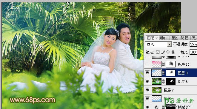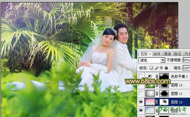 9、新建一个图层,图层混合模式改为“滤色”,把前景颜色设置为:#FD27A0,用画笔把下图选区部分涂上前景色,再适当降低图层不透明度,效果如下图。
