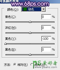 > 1、打开原图素材,创建可选颜色调整图层,对红,黄,绿进行调整,参数设置如图1 - 3,效果如图4。>