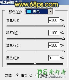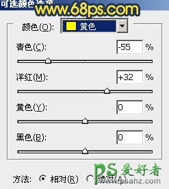 5、创建可选颜色调整图层,对黄,青进行调整,参数设置如图11,12,效果如图13。