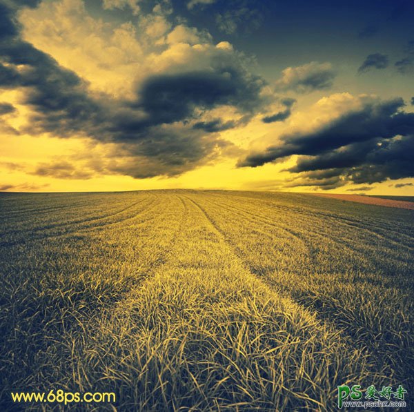 PS照片后期调色教程,PS调色教程:给漂亮田野风景照调出古典的风韵,本教程的色调有点怀旧的味道,颜色以对比较大的黄色和暗青色为主。大致调色过程:先调一下图片的层次感,然后用渐变映射来调出图片的主色,后期再适当加强一下色调即可。