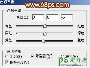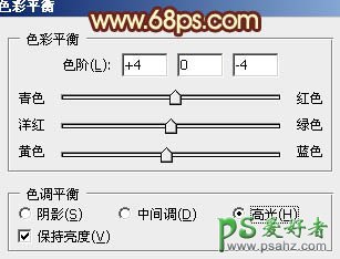 11、创建色彩平衡调整图层,对中间调及高光进行调整,参数设置如图24,25,确定后把图层不透明度改为:40%,效果如图26。