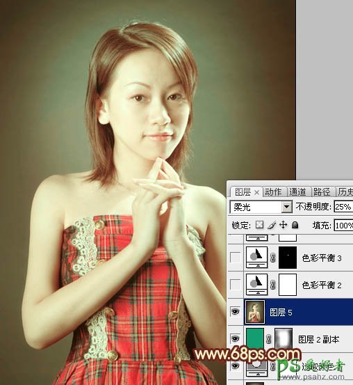 10、新建一个图层,盖印图层。执行:滤镜 > 模式 > 高斯模糊,数值为5,确定后把图层混合模式改为“柔光”,不透明度改为:25%,效果如下图。