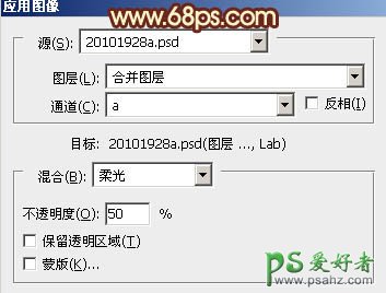 5、新建一个图层,按Ctrl + Alt + Shift + E 盖印图层。选择菜单:图像 > 模式 > Lab颜色,确定后执行:图像 > 应用图像,参数设置如图12,效果如图13。
