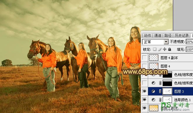 7、把当前可选颜色调整图层复制一层,图层不透明度改为:20%,效果如下图。