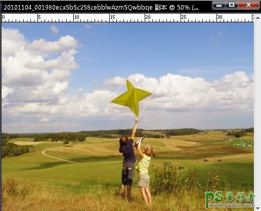 photoshop给草原上的人物照片调出柔美的朝阳色
