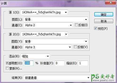 5、行计算,将黄绿选区合并即Alpha 5通道。