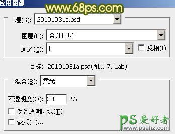 7、新建一个图层,盖印图层。执行:图像 > 应用图像,参数设置如图12,效果如图13。