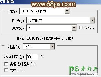 8、新建一个图层,盖印图层。执行:图像 > 应用图像,参数设置如图17,效果如图18。