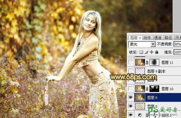 16、新建一个图层,盖印图层。执行:滤镜 > 模糊 > 高斯模糊,数值为5,确定后把图层混合模式改为“柔光”,不透明度改为:30%,效果如下图。