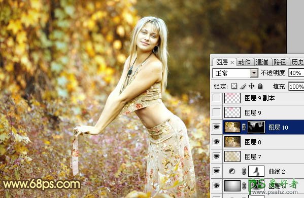 17、新建一个图层,盖印图层。执行:滤镜 > 模糊 > 高斯模糊,数值为5,确定后按住Alt 键添加图层蒙版,用白色画笔把需要模糊的部分涂出来,再适当降低图层不透明度,效果如下图。