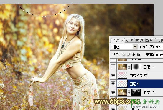 18、新建一个图层,图层混合模式改为“滤色”,把前景颜色设置为:#F78BA8,用画笔把下图选区部分涂上高光,再适当降低图层不透明度,效果如下图。