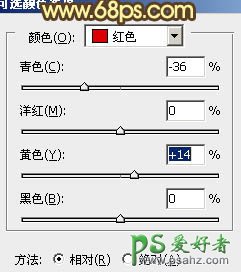 20、创建可选颜色调整图层,对红色进行调整,参数设置如图33,效果如图34。