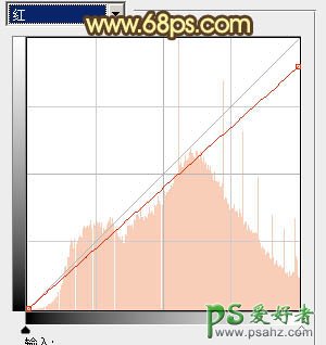 4、创建曲线调整图层,对红色进行调整,参数设置如图8,确定后用灰色画笔把人物部分稍微涂抹一下,效果如图9。
