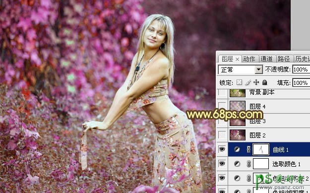 photoshop调出粉红玫瑰色漂亮美女个人写真照