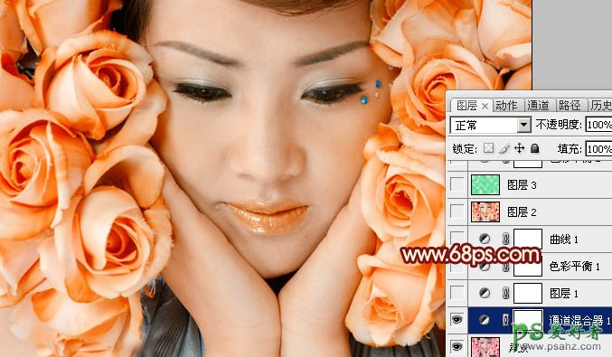 photoshop调出粉红玫瑰色漂亮美女个人写真照