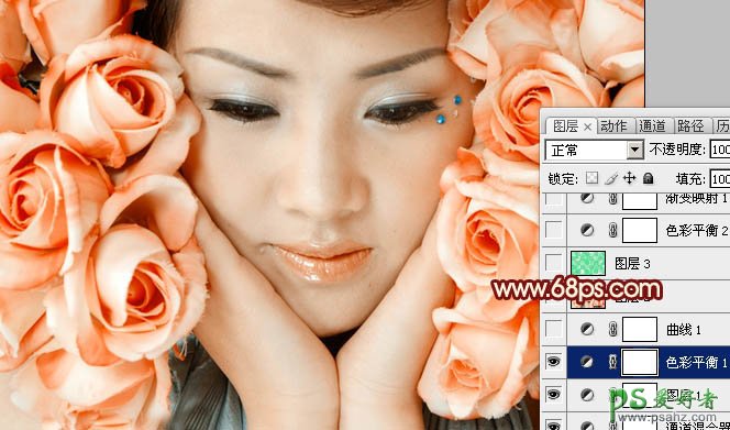 photoshop调出粉红玫瑰色漂亮美女个人写真照