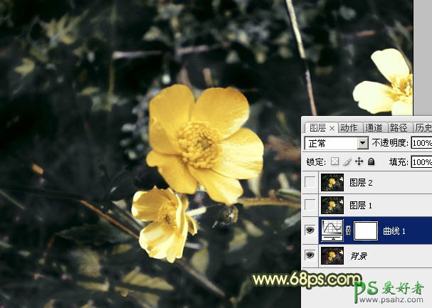 photoshop给漂亮的花朵图片调出强对比度金色效果