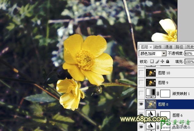 9、新建一个图层,按Ctrl + Alt + Shift + E 盖印图层,图层混合模式改为“颜色减淡”,不透明度改为:60%,效果如下图。