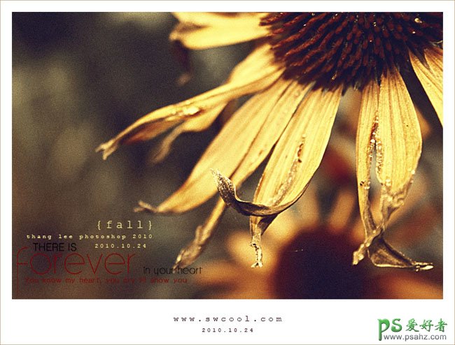 PS照片后期调色教程,photoshop给漂亮的花朵图片调出强对比度金色效果,本教程介绍古典暖色图片调色方法。作者调色以通道混合器调色为主,虽然很少用到,不过调色还是非常快捷的。色彩调好后海需要用滤镜等加上一些简单的杂色,增强图片的古典韵味。