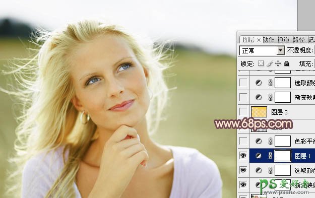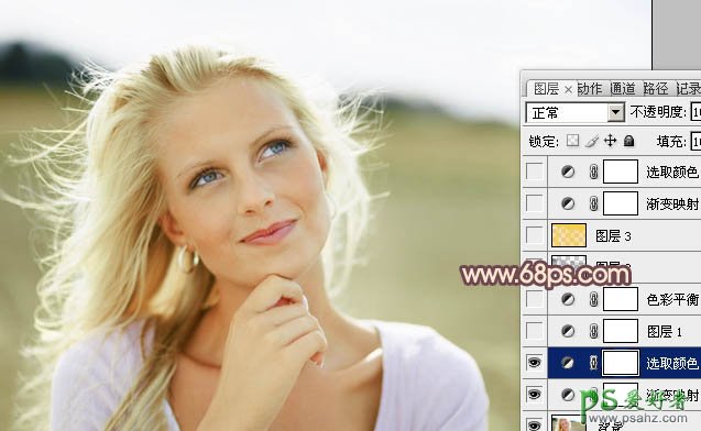 PS调色教程:给金发碧眼欧美少女图片调出甜美的淡绿色