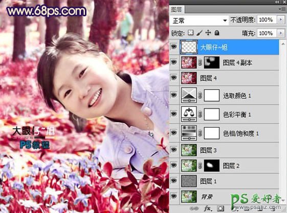 利用PS中的色相饱和度给漂亮女孩儿图片调得更清晰更绚丽