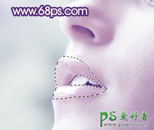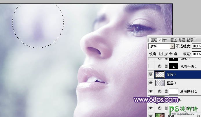 5、新建一个图层,图层混合模式改为“滤色”,把前景颜色为紫色:#4C1A73,用画笔把下图选区部分涂上高光,如下图。