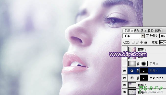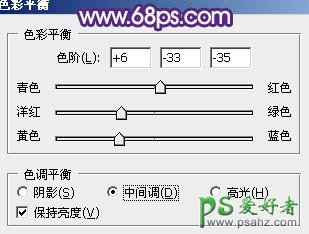 6、用钢笔工具勾出嘴唇部分的选区,按Ctrl + Alt + D 羽化1个像素后创建色彩平衡调整图层,对中间调进行调整,参数设置如图11,确定后把色彩平衡调整图层复制一层,图层不透明度改为:20%,效果如图12。