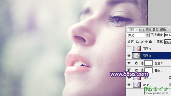 11、新建一个图层,盖印图层。按Ctrl + Shift + U 去色,图层混合模式改为“柔光”,不透明度改为:10%,效果如下图。