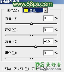 10、创建可选颜色调整图层,对红,黄进行调整,参数设置如图24,25,效果如图26。