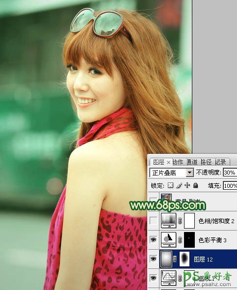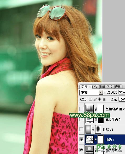photoshop给时尚的美女写真图片调出青红蜜糖色
