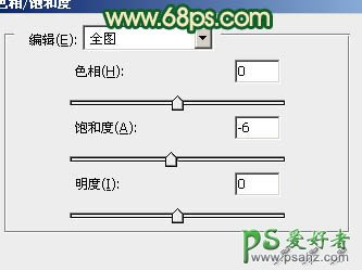 13、创建色相/饱和度调整图层,适当降低全图饱和度,参数设置如图30,效果如图31。