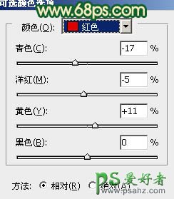 photoshop给时尚的美女写真图片调出青红蜜糖色