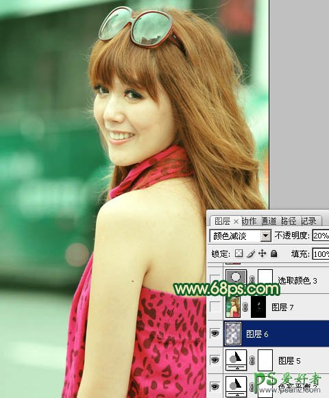 9、按Ctrl + Alt + ~ 调出高光选区,按Ctrl + Shift + I 反选,新建一个图层填充颜色:#3A155C,图层混合模式改为“颜色减淡”,不透明度改为:20%,效果如下图。