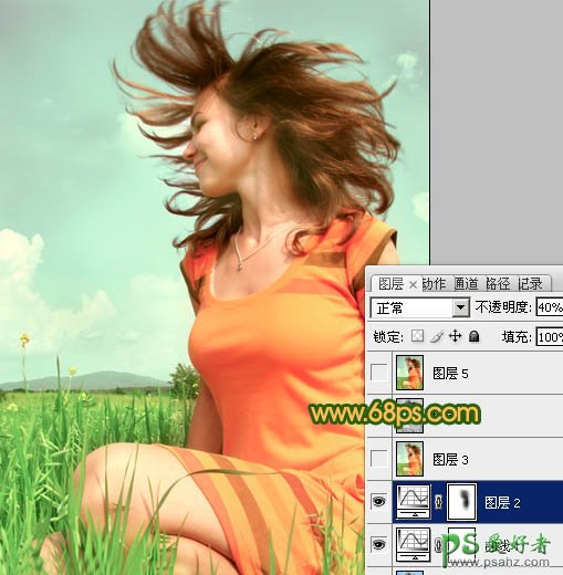 11、按Ctrl + J 把当前曲线调整图层复制一层,用黑色画笔把人物部分擦出来,图层不透明度改为:40%,效果如下图。