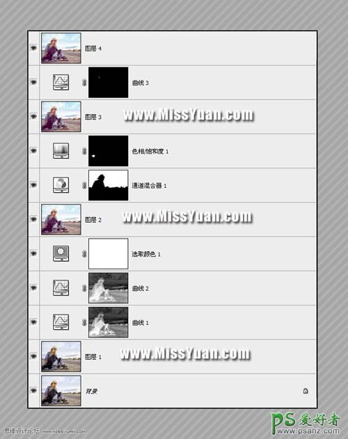 PS调色教程:给清爽的欧美少女海景照调出柔和的蓝紫色