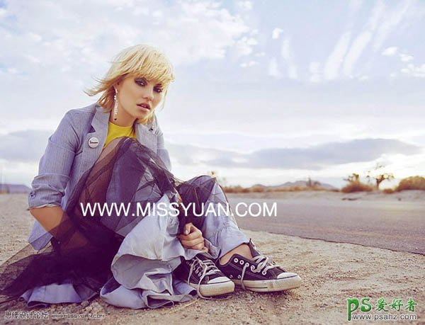 PS调色教程:给清爽的欧美少女海景照调出柔和的蓝紫色