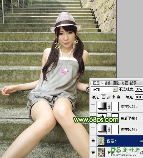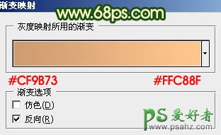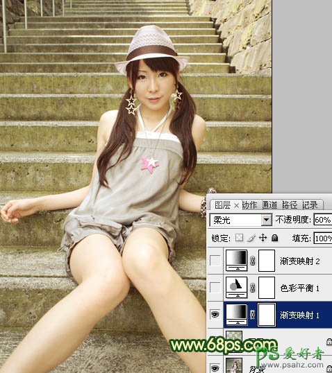 2、创建渐变映射调整图层,颜色设置如图2,确定后把图层混合模式改为“柔光”,不透明度改为:60%,效果如图3。