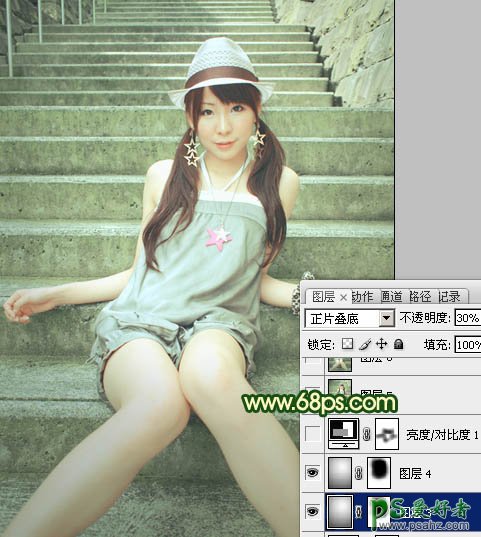 9、新建一个图层,简单给图片加上暗角,方法任选,大致效果如下图。
