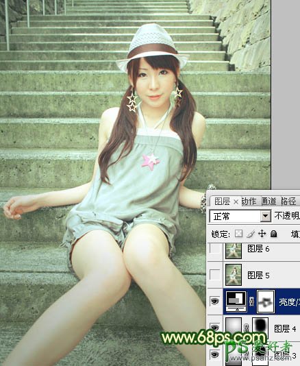 10、创建亮度/对比度调整图层,适当加大图片的对比度,参数设置如图20,确定后用黑色画笔把曝光过渡的部分擦出来,效果如图21。