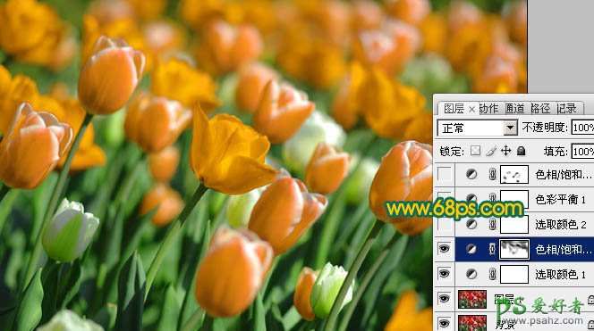 PS照片后期调色教程,photoshop调出鲜艳金色的郁金香图片,本教程介绍较为鲜艳的橙色图片调色方法。大致过程:先用调色工具把素材图片的主色调成橙色,然后适当加强主色的层次和对比即可。 最终效果 原图 1、打开原图素材,创建可选颜色调整
