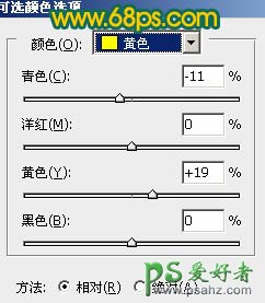 3、创建可选颜色调整图层,对黄、绿、白进行调整,参数设置如图8 - 10,效果如图11。