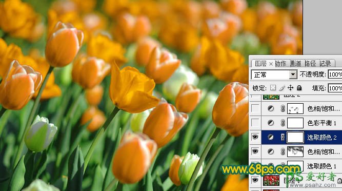 PS照片后期调色教程,photoshop调出鲜艳金色的郁金香图片,本教程介绍较为鲜艳的橙色图片调色方法。大致过程:先用调色工具把素材图片的主色调成橙色,然后适当加强主色的层次和对比即可。 最终效果 原图 1、打开原图素材,创建可选颜色调整