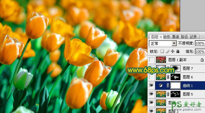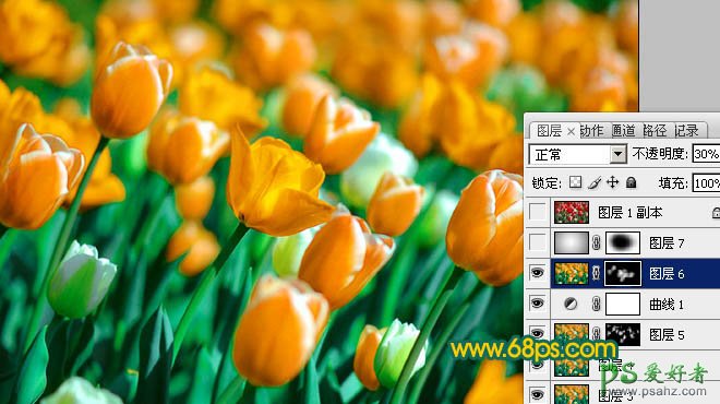 10、新建一个图层,盖印图层。执行:滤镜 > 其它 > 自定,数值默认。确定后按住Alt 键添加图层蒙版,用白色画笔把需要清晰的花朵部分擦出来,再适当降低图层不透明度,效果如下图。