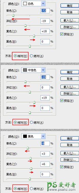 11、为使天空与大地的颜色相统一,需要对天空的色彩继续进行调整。创建可选颜色调整图层,分别对白色、中性色、黑色进行调整,参数设置如下图。