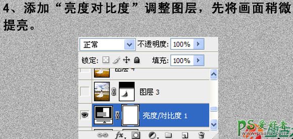 4、创建亮度/对比度调整图层,将画面稍微调亮一点,参数设置如下图。