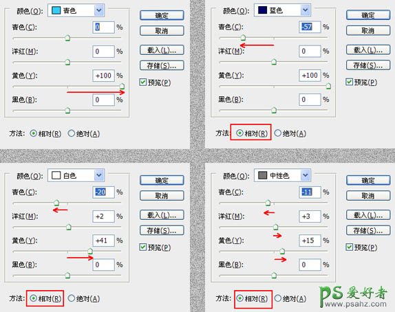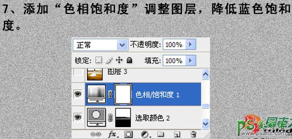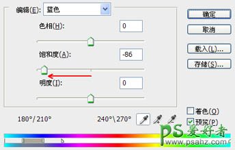 7、创建色相/饱和度调整图层,适当降低蓝色饱和度,参数及效果如下图。