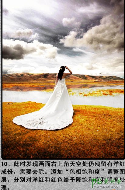 photoshop调出暖金色外景漂亮美女婚纱写真照