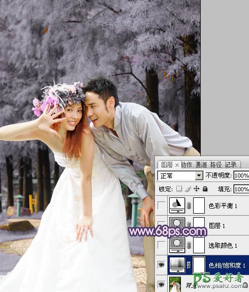 PS调出浪漫情侣婚纱照漂亮的紫红色
