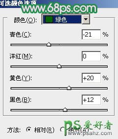 2、创建可选颜色调整图层,对黄、绿、青、蓝进行调整,参数设置如图2 - 5,效果如图6。